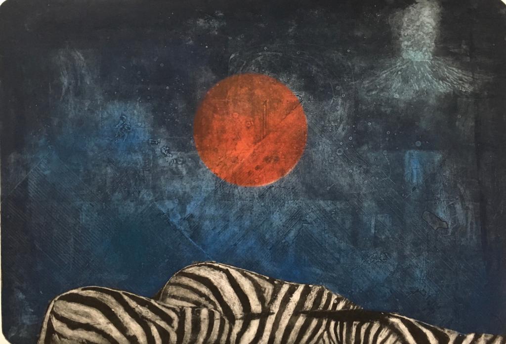《盆景4》李宏斌,74×88.5cm,油印套色木刻