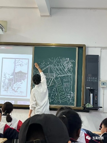 当站在这个讲台的时候,我知道这是我学以致用的时候,也是我的高光时刻。每天的认真备课,就是为了第二天可以把更好更多的知识传授给边疆的小学生们。他们是那么地渴望着美术课带来的快乐,渴望着拿起画笔描绘这世界的美丽景象。他们一双双明亮的眼睛,让我感到了作为一名教师责任的重大,更感悟到 “书到用时方恨少”这句话的含义。“美育浸润计划”给了我们在校大学生一个实践的机会,在实践中深刻体会到自己在知识储备量上的不足,更体会到在教学技巧经验上的匮乏。这也迫使我不断用知识武装自己,将自己在学校时所学的专业知识灵活地运用到教学实践中去。