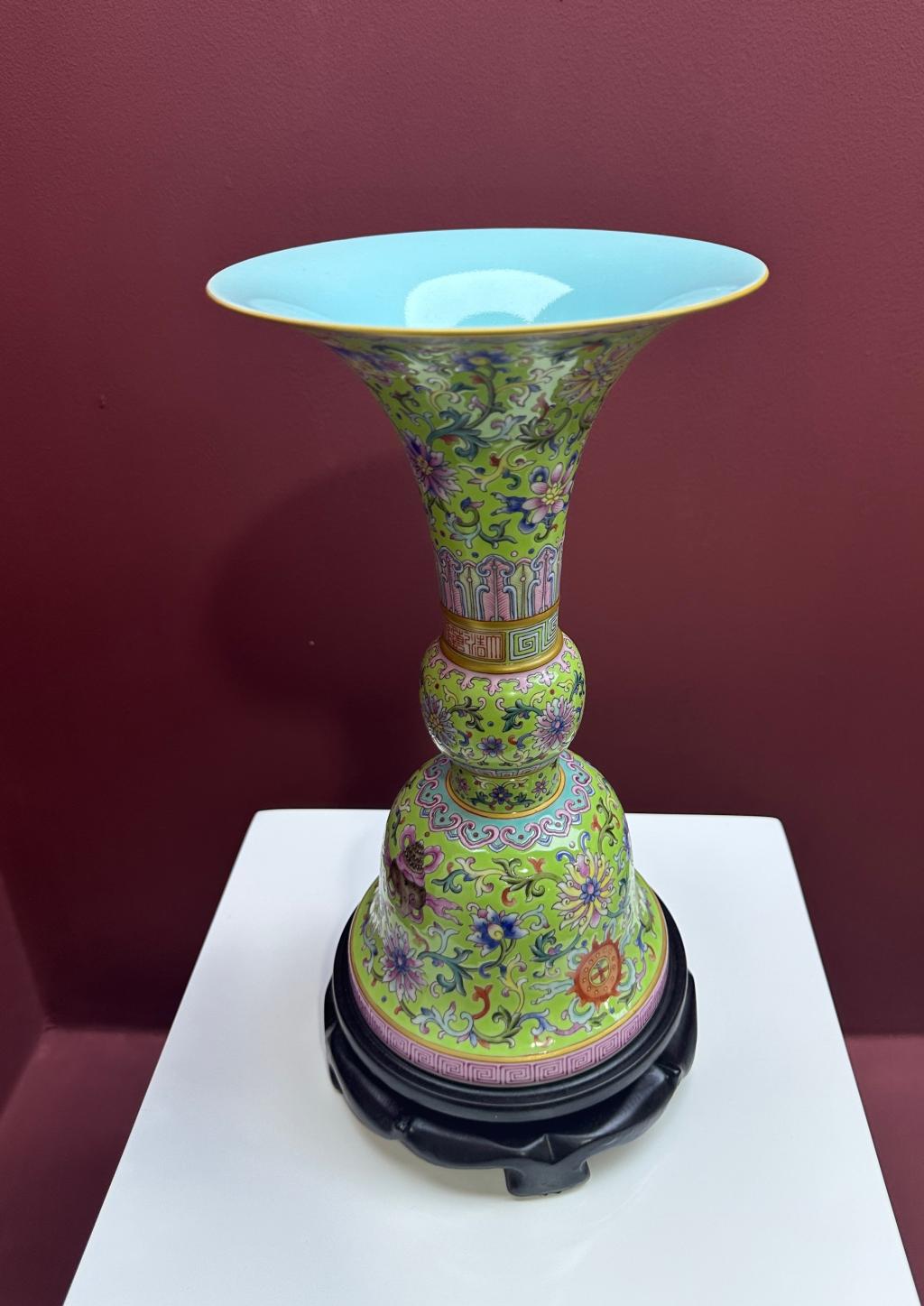 仿清乾隆描金绿地粉彩缠枝八宝纹花觚 仿清乾隆黄地描金轧道镂空婴戏纹象耳转心瓶 仿清乾隆描金绿地粉彩缠枝八宝纹花觚