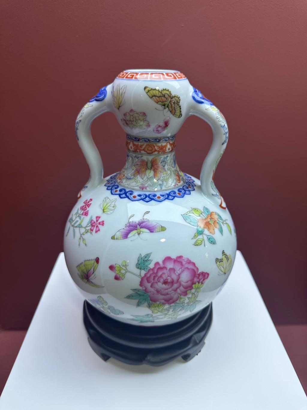 仿清乾隆粉彩花蝶纹如意耳尊