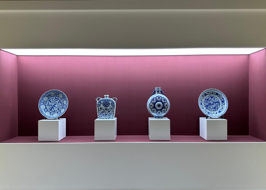 仿元青花兰地白花牡丹纹菱口大盘 仿元青花凤穿花四方扁瓶 仿清乾隆青花八宝纹抱月瓶 仿元青花鸳鸯莲池纹菱口盘