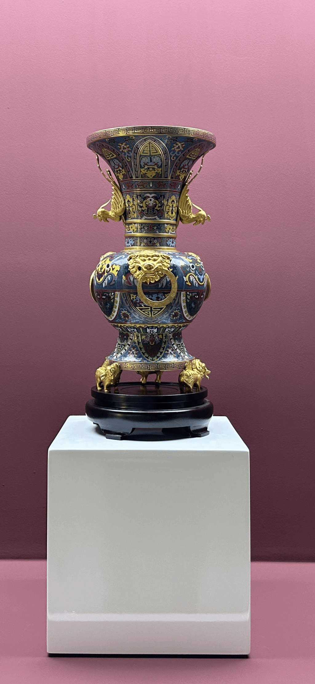 仿清乾隆粉彩松鼠葡萄纹方尊 仿清乾隆黄地锦纹开光粉彩花卉纹四方瓶 仿清乾隆胭脂红轧道缠枝花纹梅 仿明嘉靖五彩缠枝团龙纹花觚