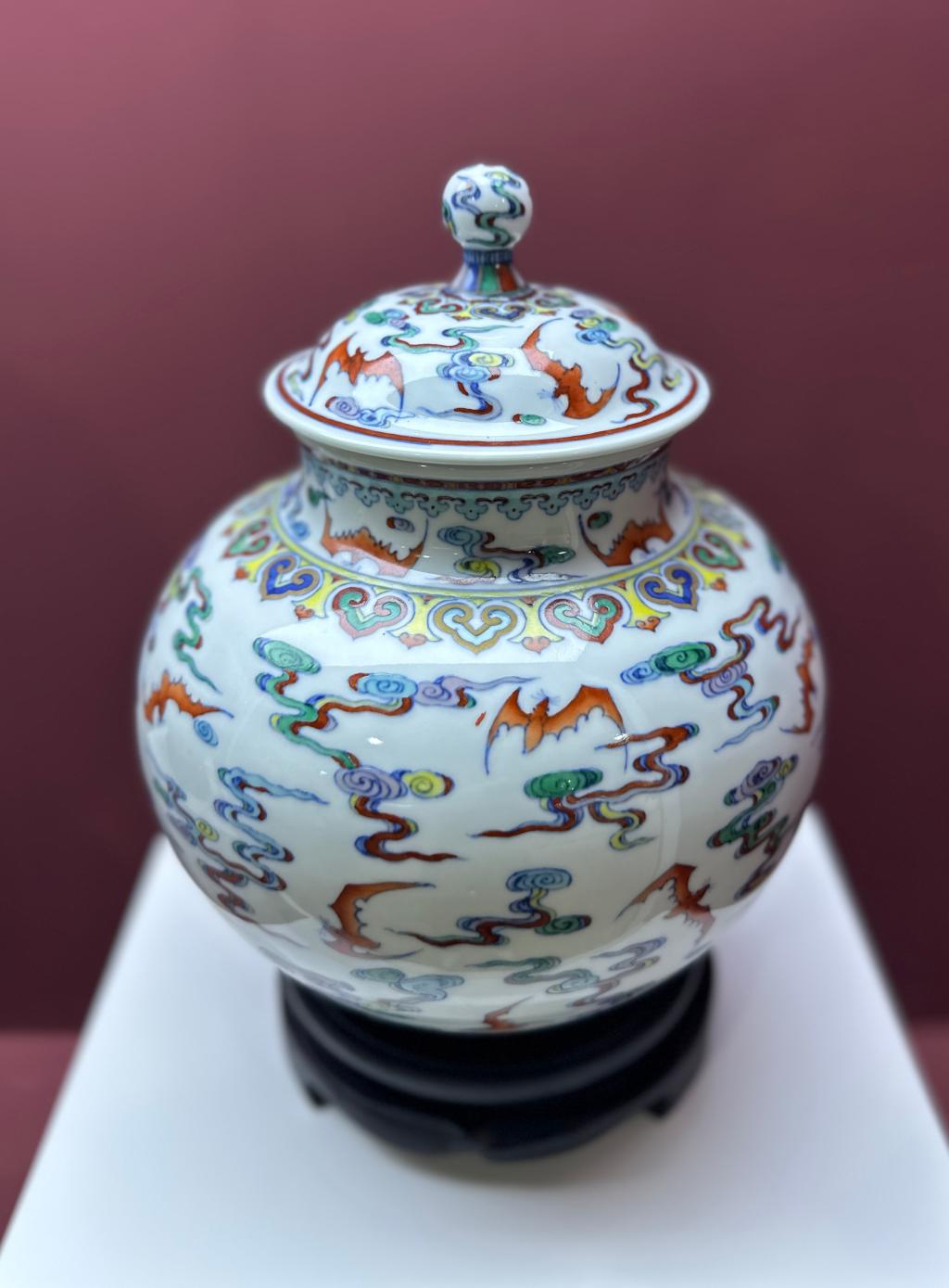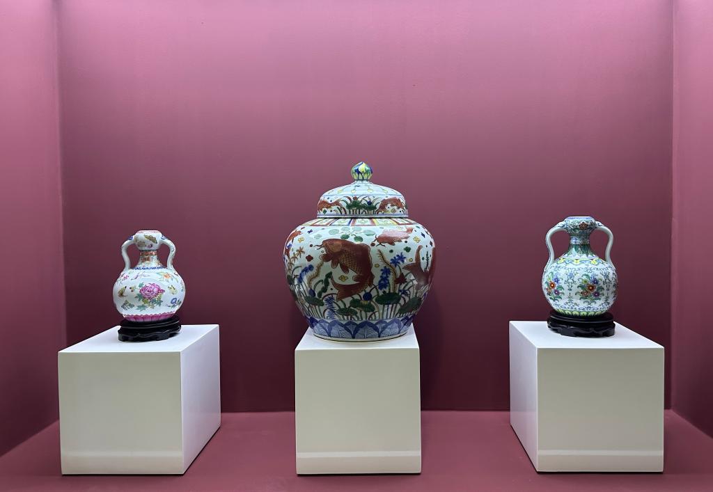仿清乾隆粉彩花蝶纹如意耳尊 仿明嘉靖五彩鱼藻纹盖罐 仿清雍正斗彩摘枝花纹蒜头瓶