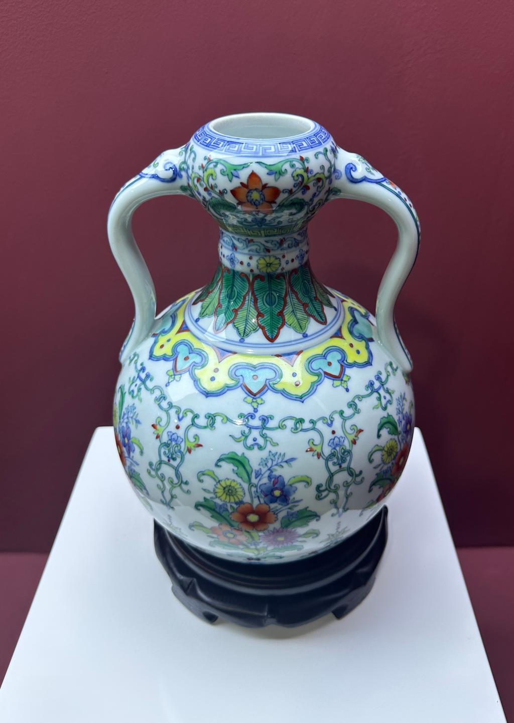仿清雍正斗彩摘枝花纹蒜头瓶