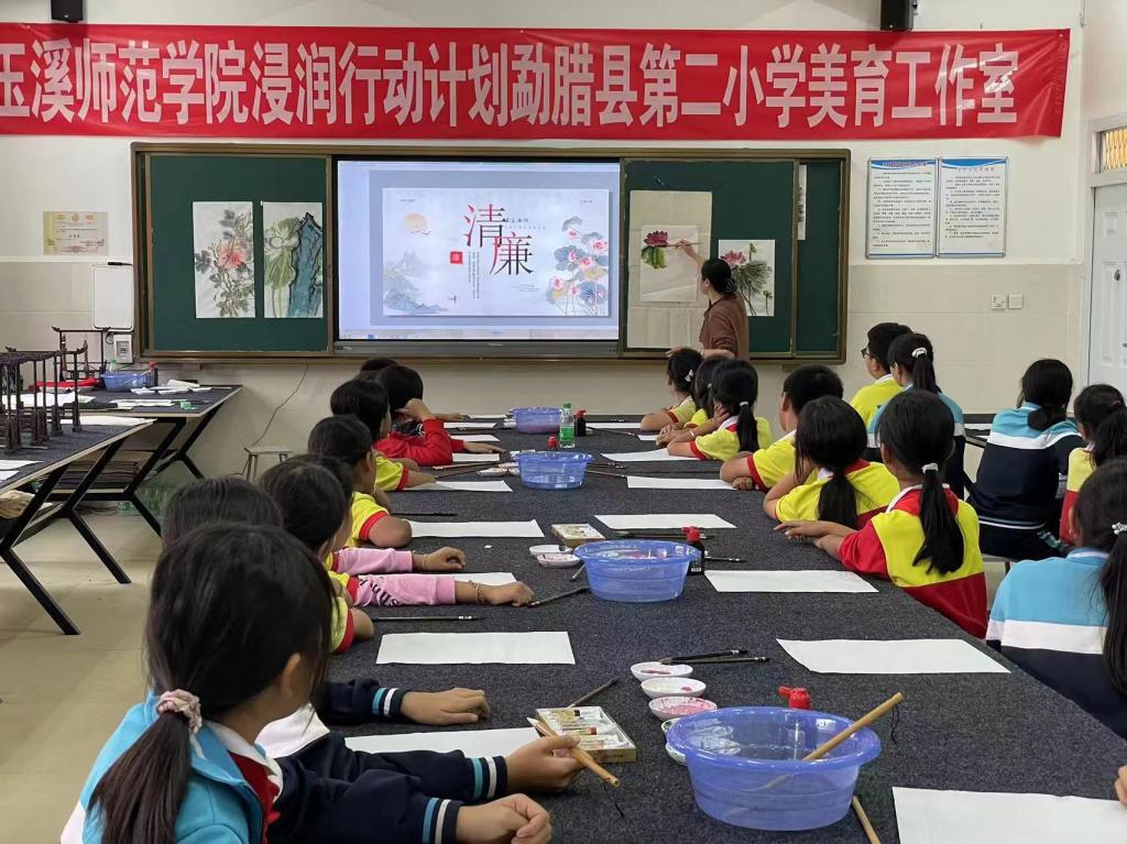 2023年12月1日,这是个具有重要意义的日子,玉溪师范学院“美育工作室”在勐腊县第二小学挂牌成立了。勐腊县教体局、勐腊县第二小学以及我们美术学院的师生参加活动。“美育工作室”不仅是玉溪师范学院在勐腊县设立的首个工作室,更是边疆地区美育工作的一个重要里程碑。“美育工作室”的成立,旨在通过开展丰富多样的美育活动,让更多的孩子们感受到美的魅力,激发他们对艺术的热爱和追求。