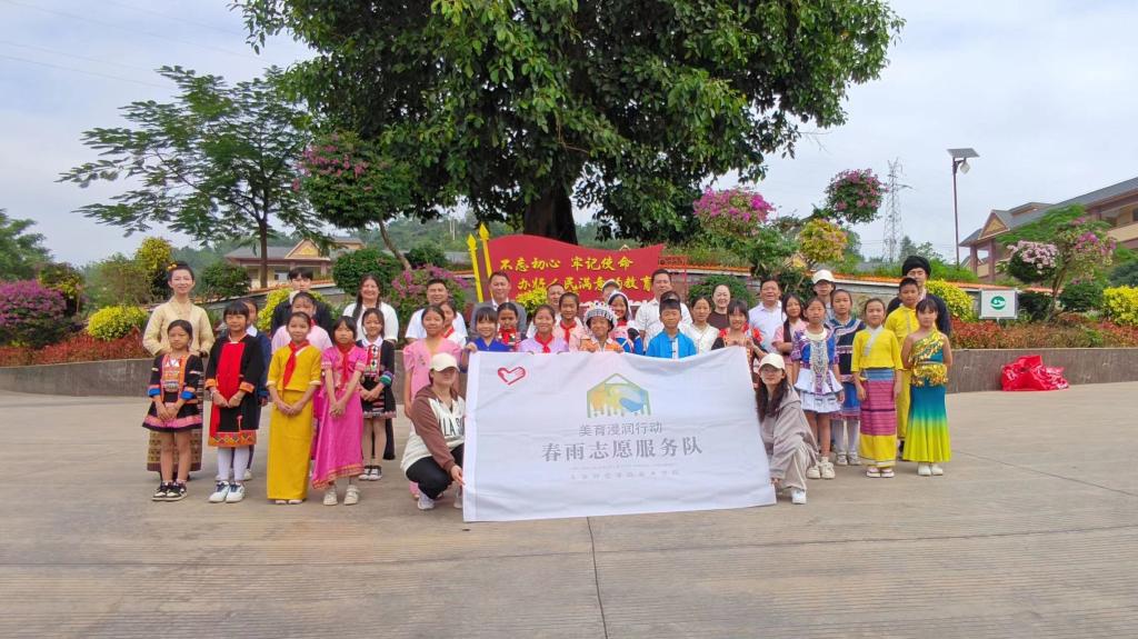 2020年中共中央办公厅、国务院办公厅联合印发《关于全面加强和改进新时代学校美育工作的意见》指出:“学校美育是培根铸魂的工作,全面加强和改进美育是高等教育当前和今后一个时期的重要任务”。《云南省教育高质量发展三年行动计划(2023—2025年)》强调:“要力争通过三年的集中攻坚,实现怒江、迪庆和边境县(市)教育质量大提升、教育事业大发展”。体育美育浸润行动是依托高校的美育资源,为省内偏远边境县提供持续性的体育美育帮扶。玉溪师范学院美术学院根据学校的安排部署,把美育浸润行动设定为引导青年学生强化服务社会意识、提升服务社会能力、践行志愿服务精神和助力乡村振兴的专项工作和任务。美术学院将美育浸润行动计划以志愿服务的方式推进,并将其命名为“春雨志愿服务”,旨在充分发挥艺术专业的优势,融入玉溪师范学院“聂耳和国歌”的思政育人特色,以德艺双馨的育人理念,让美育能够真正成为“春风化雨”的力量,探索以德树人、以美育人的高校美育浸润行动路径,助力云南省边境县的教育事业发展,推动新时代义务教育优质均衡发展。